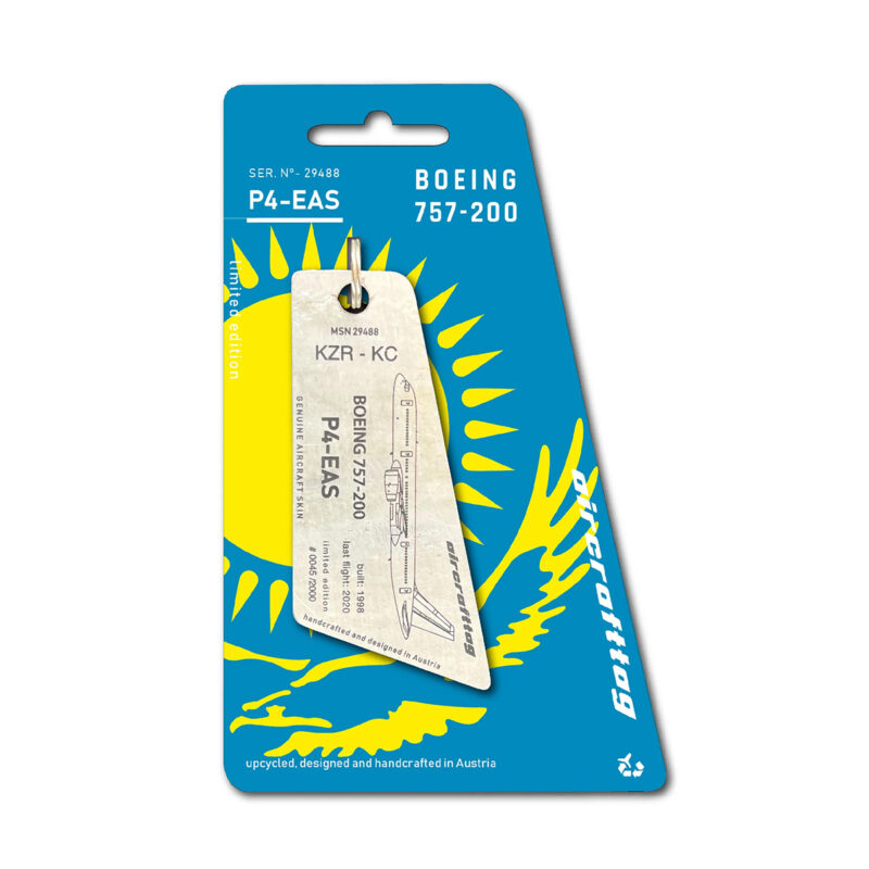 Aircrafttag Air Astana Boeing 757 P4-EAS bicolor text