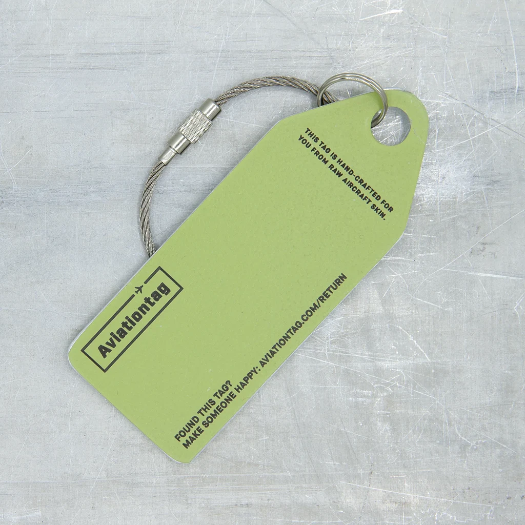 Für Sammler ist dieser Aviationtag etwas Besonderes, da er aus originaler Flugzeughaut gefertigt wurde.
