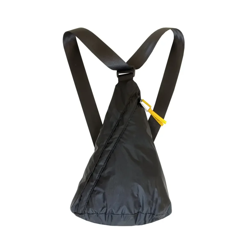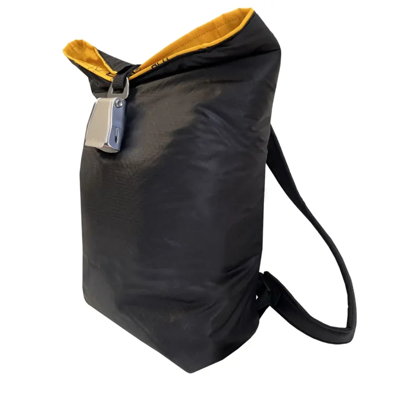 Die Tasche besteht aus recycelten Rettungswesten – die im Original schon Wasser und Wetter trotzen mussten. So schützt sie deine Habseligkeiten auch bei leichten Regenschauern. -