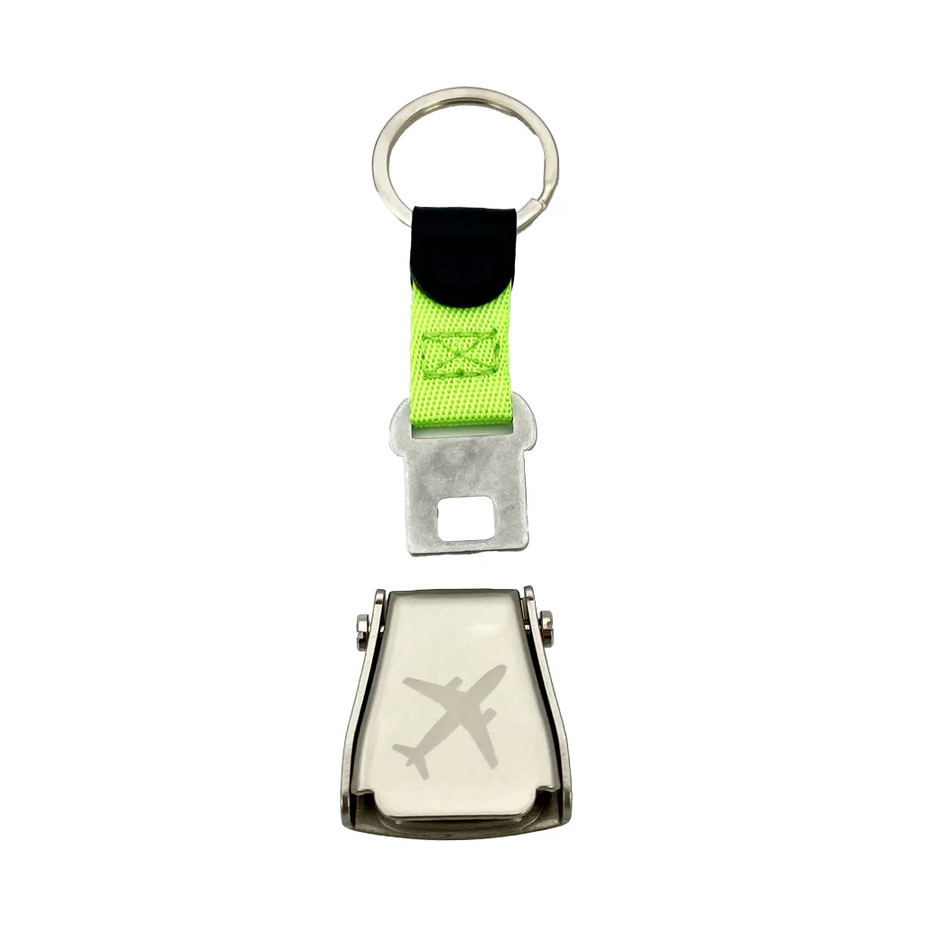 Schlüsselanhänger Flugzeug Seatbelt (Gurtschnalle) mit Flaschenöffner – grün